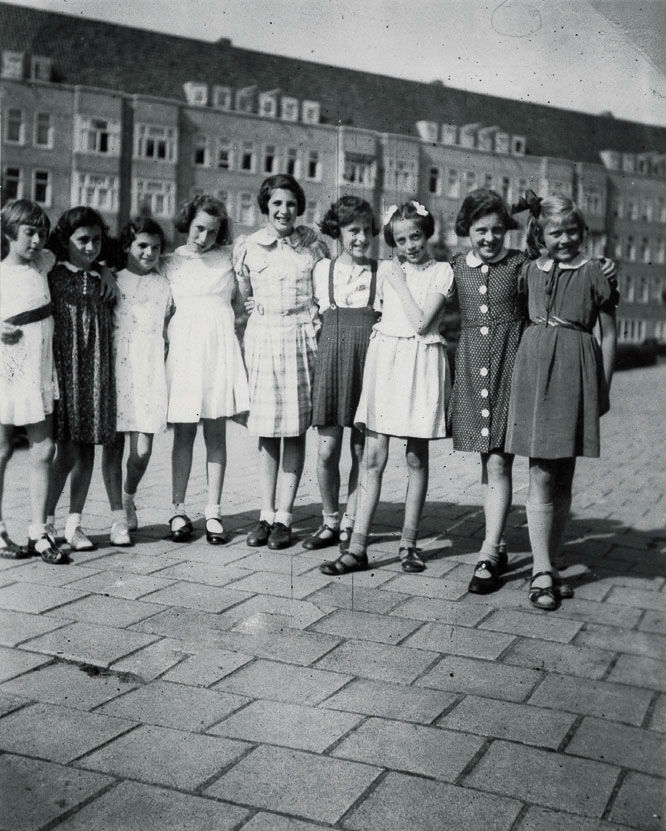 A photo of Anne Frank and her friends celebrating Anne's 10th birthday, 1939.