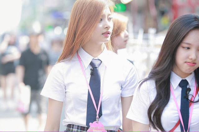 Tzuyu of JYP's upcoming female group Twice is garnering attention with her school uniform photos.
