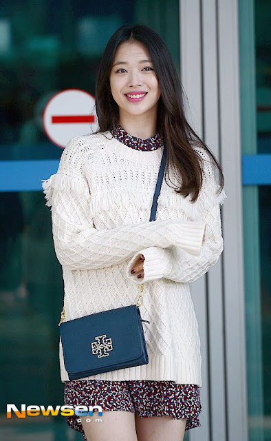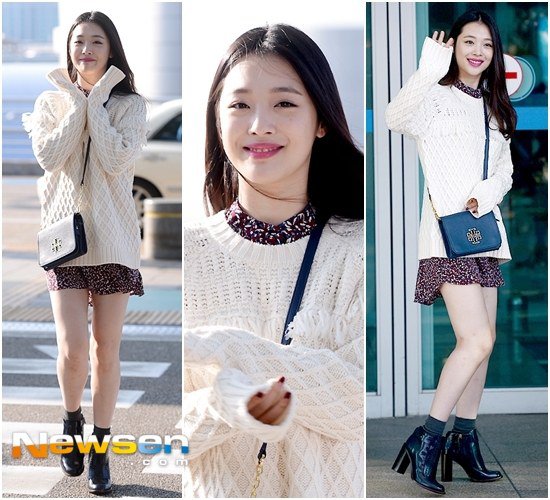 Sulli is all-smiles to the photographers as she is spotted in Incheon Airport departing for New York where she's shooting her pictorial for ELLE Magazine.