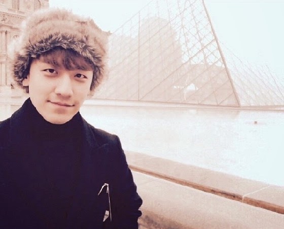 In the selfie, Seungri is standing in front of the Louvre Museum in Paris. He smiles to the camera in a warm furry hat and black turtleneck sweater.