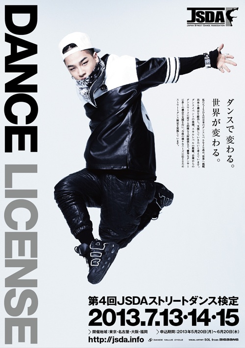 Big Bang’s charismatic Taeyang has been chosen as visual artist character image of ‘Japan Street Dance Association’ In the middle of April, Taeyang shoot advertising for Japanese Street Dance Association (JSDA) and showcased his dancing skills. JSDA believed that Taeyang showed such a great performance at world tour in 2012 so they chose him as their advertising model. Taeyang shared “I’m happy, I’m very happy! I want to inspire people with my music and dance. I hope my dance reaches out to a lot of people.” The new CF will grace the large screens in the neighborhood near Shibuya Station in Tokyo, Nagoya Station in Nagoya and at Osaka Shinsiahbashi starting from May 13th.