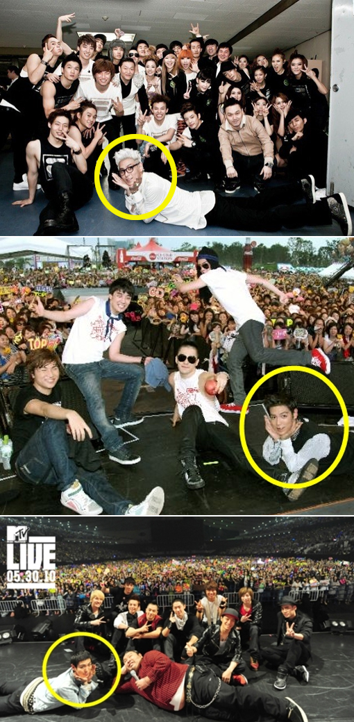 Recently in an online community forum, several pictures were posted under “T.O.P’s consistent habit since debut.” In the photos, T.O.P lies on the floor and is making flower pose with his hands under his chin.