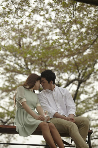 In the scene, Suzy and Lee Hyeon Jin are sitting on the bench under the cheery tree. They affectionately look at each other with fallen flowers scattering and flying around like snow flakes. Lee Hyeon Jin looks at the while yogurt left at the corner of the Suzy’s mouth, and slowly approaching her head on with smile. After a short exchange of vision, their lips gently touch.