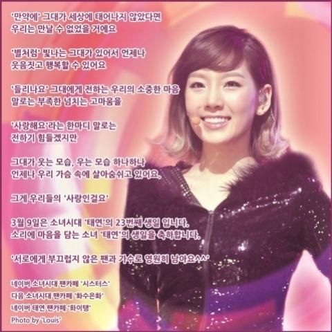SNSD Taeyeon fans celebrates her 23rd birthday! One of the ways her fans celebrated her birthday was by publishing newspaper ads with a solo photo of Taeyeon, which was very heartwarming and a lot of people can read it.