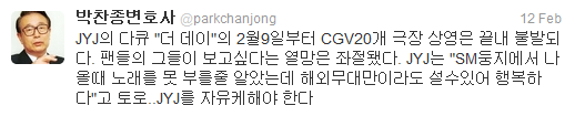 On February 12th, Attorney Park Chanjong tweeted again about Korean group JYJ.