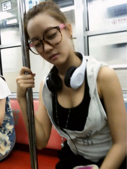 Rainbow's Woori shared a new selca of herself sleeping in the train.