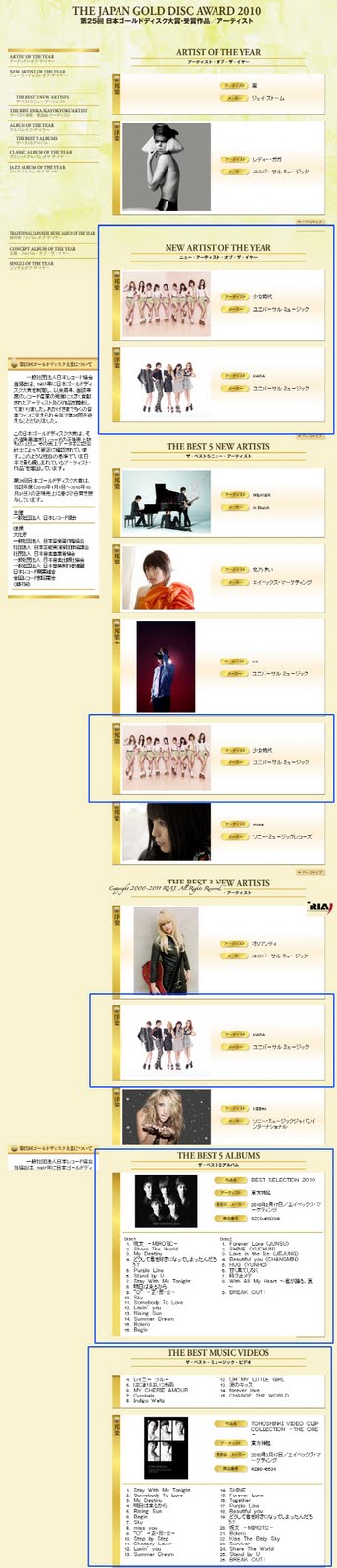 The results were not surprising as SNSD and Kara’s achievements have surpassed many new artistes in Japan. However, unlike SNSD, MIWA and other new Japanese artistes, Kara were placed in the ‘Best 3 New Artists’ in western music category, alongside American popstar, Ke$ha.