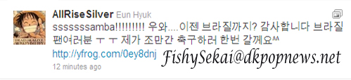 Super Junior member Eunhyuk thanked his brazilan fans trough  his twitter account.