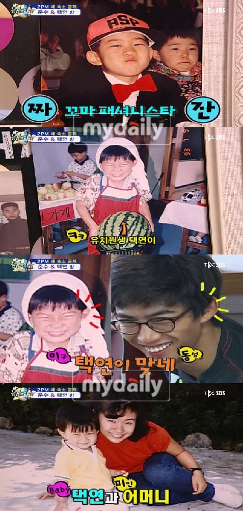 However, for Taecyeon, they found his childhood photo's in his room, In the pictures, it showed the "little mischievous Taecyeon" causing Taecyeon embarrassment.