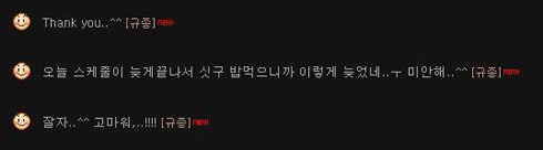 Just a few lines of KYU @ TOKTOK room ^^ Thank you .. ^ ^ [Kyu Jong] I finished late in the schedule so I’m late eating rice… I’m sorry .. ^ ^[Kyu Jong] Goodnight..^^ Thank you ,..!!!! [Kyu Jong]