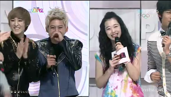 This is the first time Sulli interviewing guests on the show and U-Kiss was interviewed on the show today.The boys made their comeback with "Round & Round" on the show.
