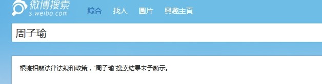 Fans who typed 'Zhou Tzuyu' on Weibo is shown the message 'According to Rules and Regulations, 'Zhou Tzuyu' search results won't appear.