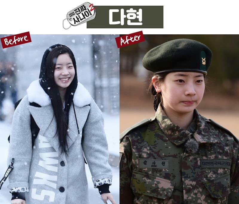 MBC Real Men reveals TWICE Dahyun's photos before and after transforming into a soldier, check out the photo below: