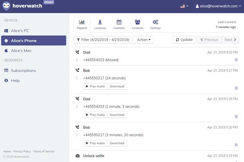 The spying tool can track the details of all incoming or outgoing calls. The recorded information will be accessible on your Hoverwatch account’s dashboard.
