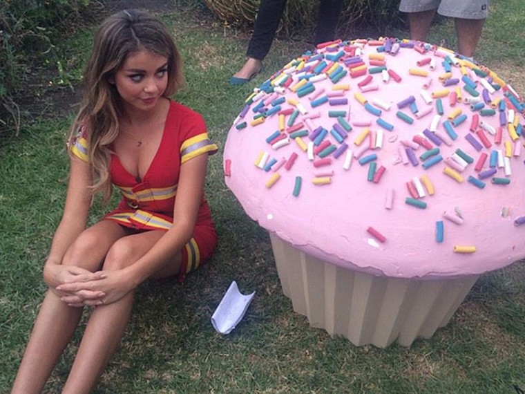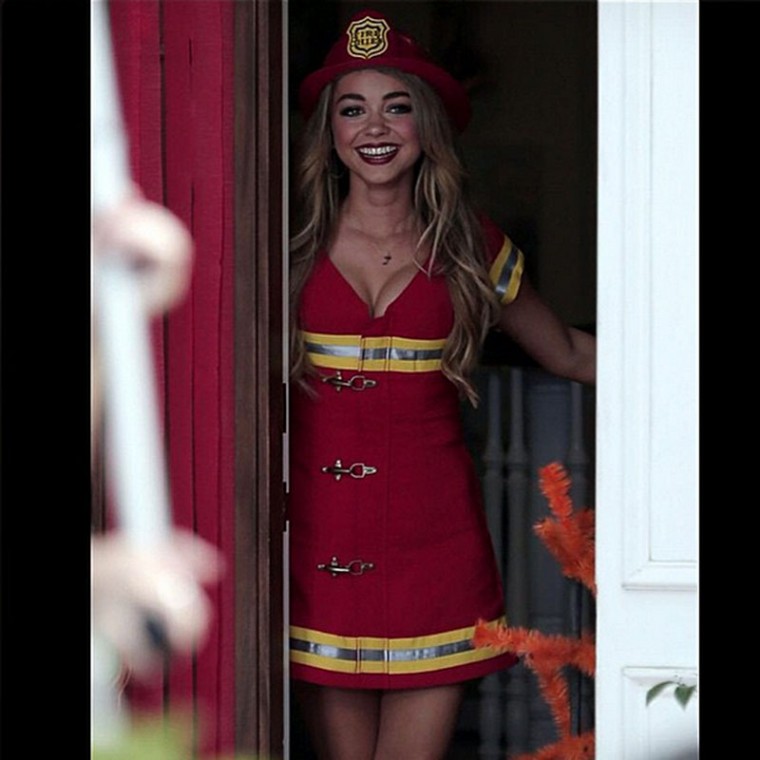 Sarah Hyland is really good at Halloween. She'll make just about any costume look slutty and sexy at the same time. Here she is on set of Modern Family's Halloween episode. Check it out: