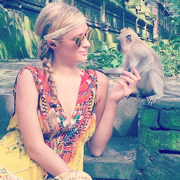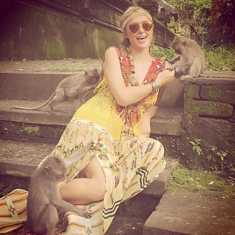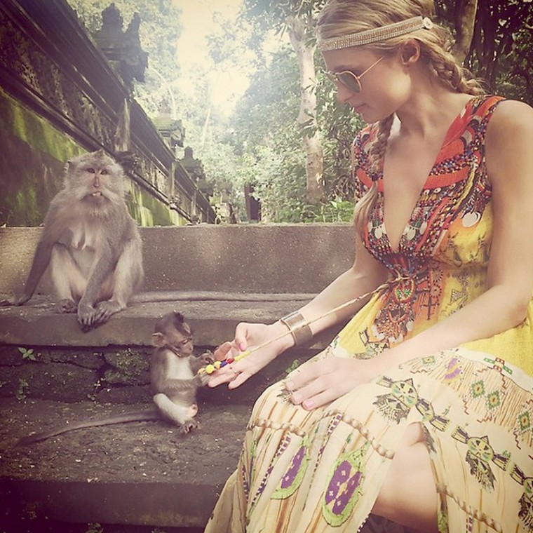 Paris Hilton isn't quite the herpes of the Internet as one thinks her to be these days because she's finally gotten Instagram right. Here she is holidaying and playing with monkeys because that's what you do when you're on a holiday.