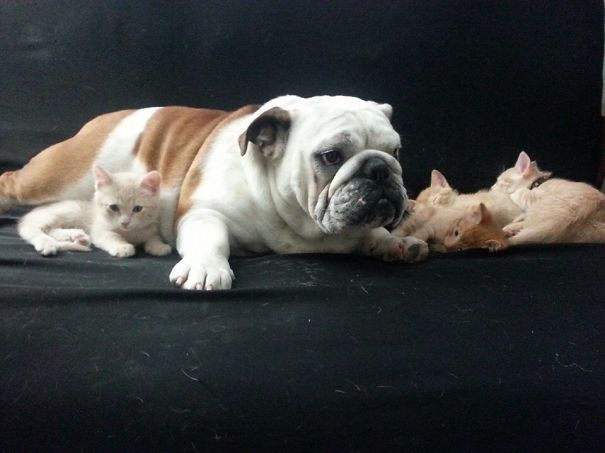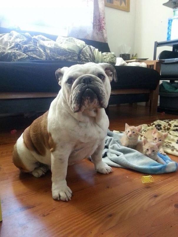 Hammie The Bulldog Is The Perfect Babysitter... For Your Kittens
