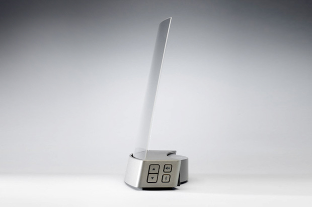 The $350 speaker pairs with devices through Bluetooth and is available in a silver, dark bronze or charcoal base. Available at website.