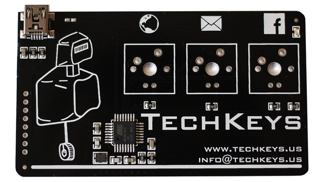 The card is only big enough for three keys, which aren't actually included. Nevertheless, the keyboard can be used for shortcuts allowing you to access your web browser or email. Check it out in the video below: