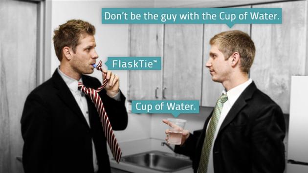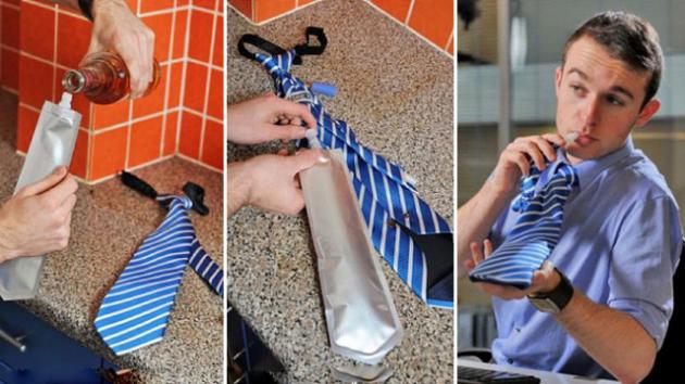 There are more than one genius ways to hide your drinking habit while at work, though if you do have one, it's best to seek some help first. Either way, this could be a novelty product combining style with function. Check out the "Flask Tie", and it's got a six ounce pouch hidden in the longer hanging part, where there's a straw tucked away in the short bit, so you can do the sipping - while looking dapper.