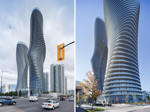 Chinese architecture firm MAD has finally finished the Absolute Towers in Canada after six years of planning and construction. The two towers stand at 492 and 557 feet. Apartments are located on each oval shaped floor, and th levels are rotated gradually. According to MAD founder Ma Yansong on the Absolute Towers: