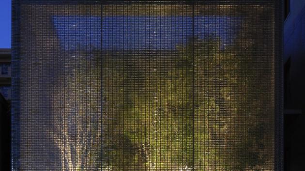 Here's the Optical Glass House - a 330 square meter building designed by Japanese architect, Hiroshi Nakamura. The glass facade comprises of 6,000 clear, soundproof acrylic blocks which are connected like a string of pearls by steel wire.