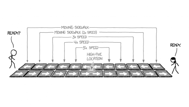 Unless you're in a hurry, you wouldn't think twice about making sidewalks fun. But let's say you're not in a hurry. Randal Munroe should get this done! After all, sidewalks, are, boring! [xkcd]