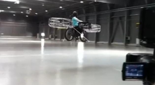 The bike developers say it'll need more powerful propellers before it can sustain flight with a human on it, but with that being said it'll be impractical for many reasons, one of which include the bike's crazy width and a hefty price tag.