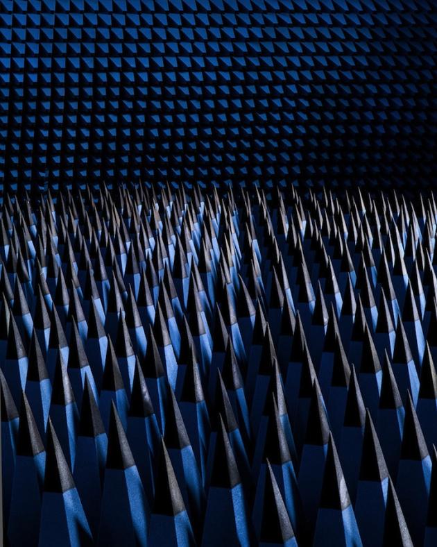 These pencil tip-looking things look like an abstract art installation, but they're actually really the art of science. These infinitely repeating barbs are part of the anechoic chambers at the Technical University of Denmark. They basically absorb sound and electromagnetic waves so scientists can test wave-emitting devices for things like volume and clarity.