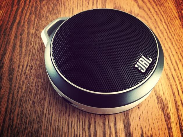 1. JBL Micro Wireless The JBL Micro Wireless is portable, lightweight and compact. It can fit into your pocket and has a loop at the top for hanging or mounting. It is Bluetooth enabled with audio jacks for non-Bluetooth devices and sounds pretty good too. The speaker charges via USB cable. Image: Flickr, scot2342.