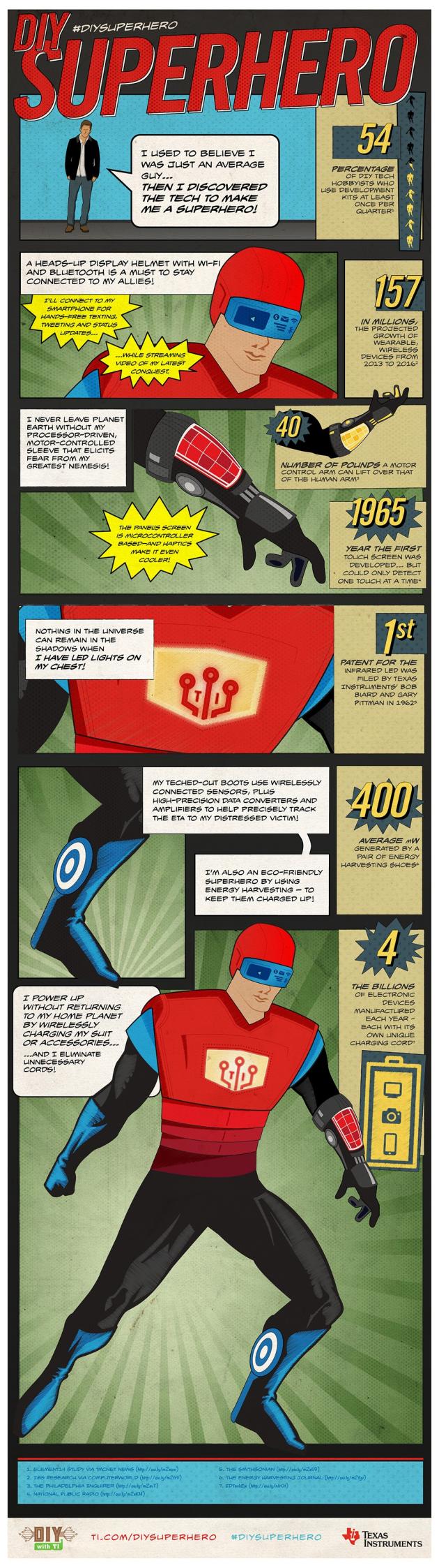 San Diego Comic-Con is starting, and this infographic comes at an apt time. It honors the DIY superhero context, with facts and figures about the ways some people are creating the future. The DIY superhero is eco friendly, resourceful, and wears shoes that harvest energy while saving our planet at the same time. Check out the infographic below. There's more to it!