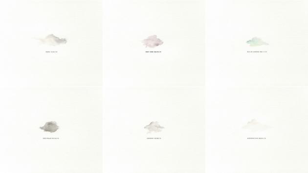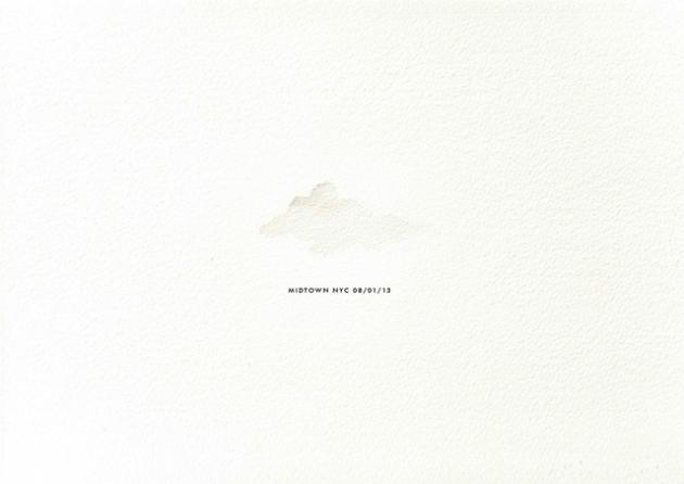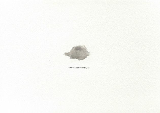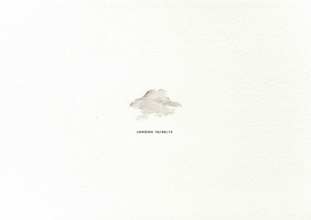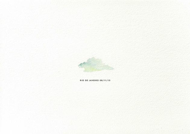 Gustavo Sousa looked to the skies for some creative inspiration, and he used rain water for his Rain Paintings. It is a series of small watercolor clouds identified by date and location they were made.
