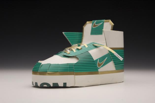 Artist Jason Ruff made a whole bunch of Nike sneakers using cigarette boxes as materials. He created perfect little replicas of classic Nike high-tops with some duct tape involved too.