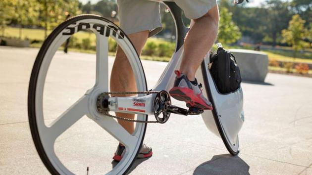 Working with Matthew Campbell and Edwin Collier, the trio created the idea of the hubless bike wheel and filled the space where the spokes would be with a storage compartment made out of a lightweight vacuum-formed PET-G plastic.