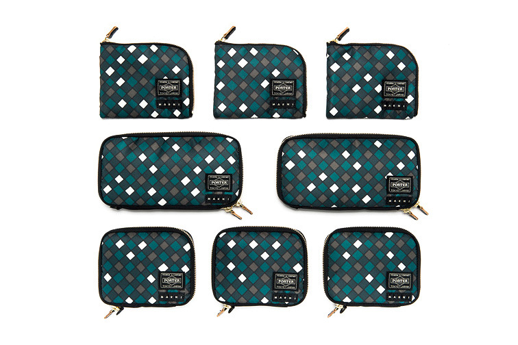 Fashion label Marni and accessories maker Porter hook up in a random four colored check pattern collection, which the two brands will release. Items include wallets, pouches and an iPad mini case to accompany a matching helmet toe bag to round off their capsule range.