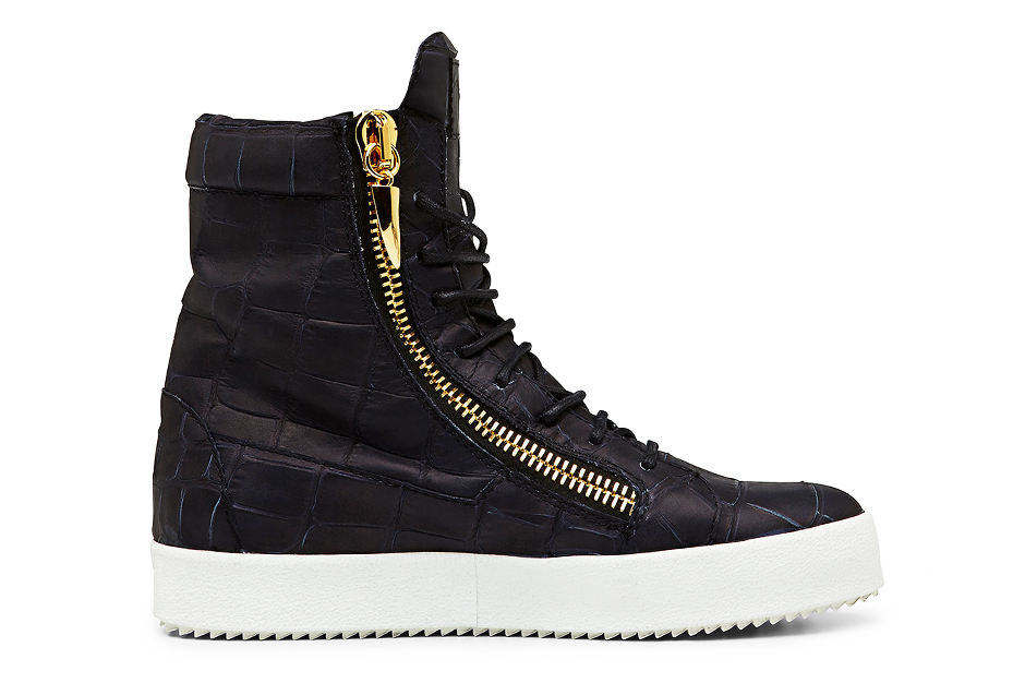 Here's Giuseppe Zanotti‘s 2014 spring/summer collection for men and it features the brand's signature silhouettes done up in luxurious leather finishes with metal hardware. It features several taller boot options and has a zippered version in croc-embossed leather with gold-tone hardware and more. Look for the new collection now at Sneakerboy.