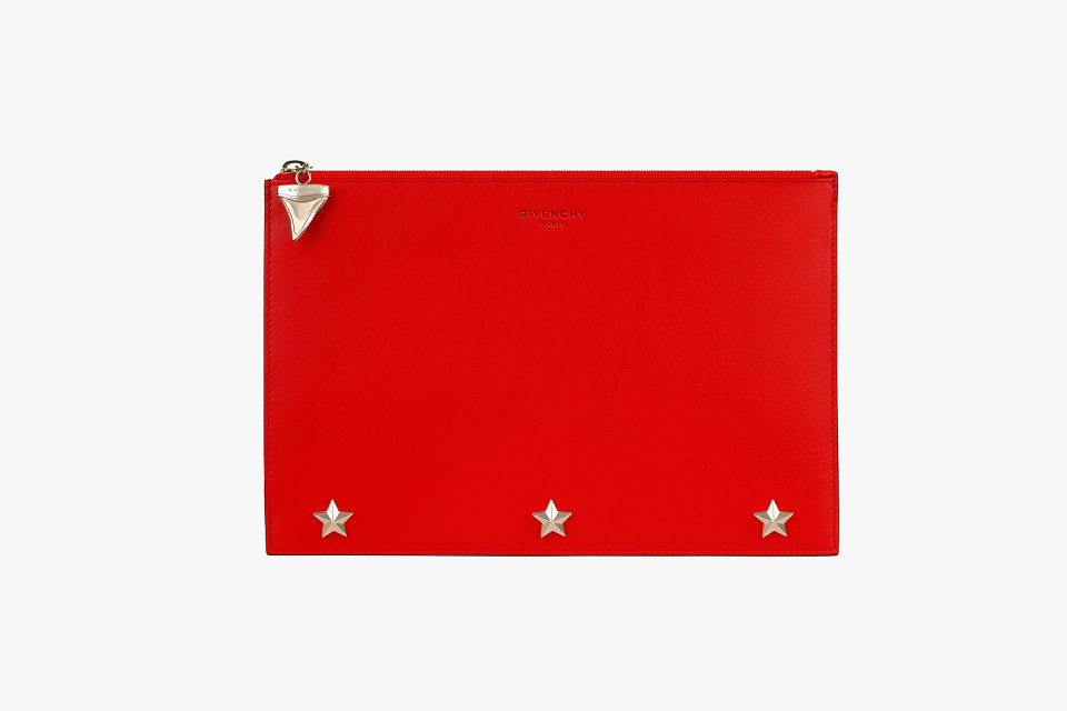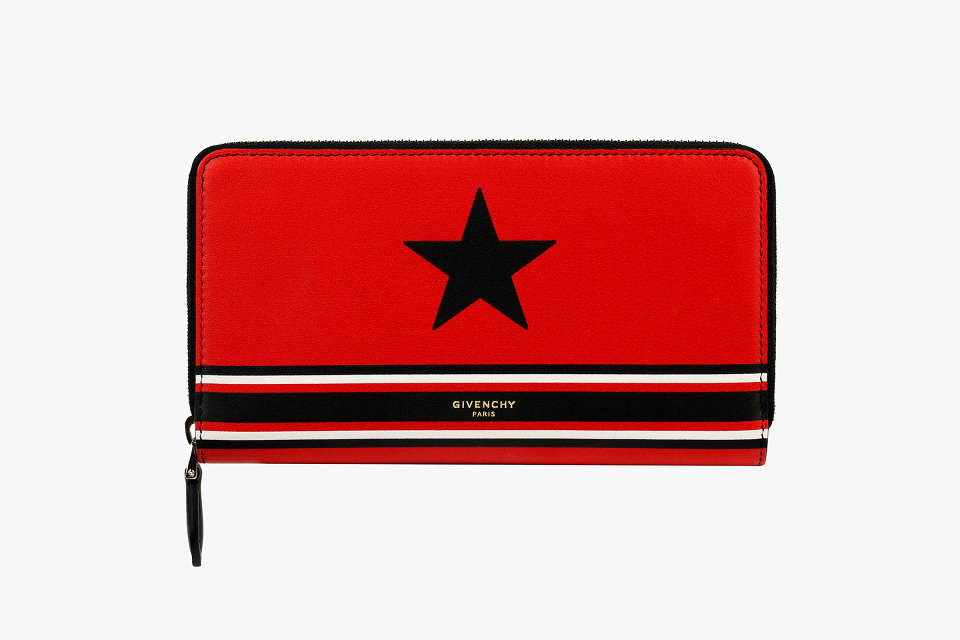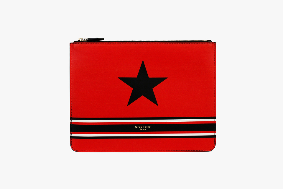 Givenchy recently launched a small collection of red and gold accessories in conjunction with the Chinese New Year. The star symbol and stripes of the brand makes it on new handbags, clutches, keychains, wallets and more.