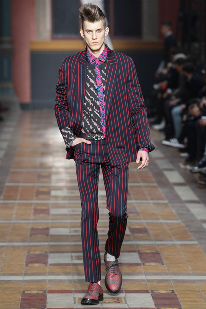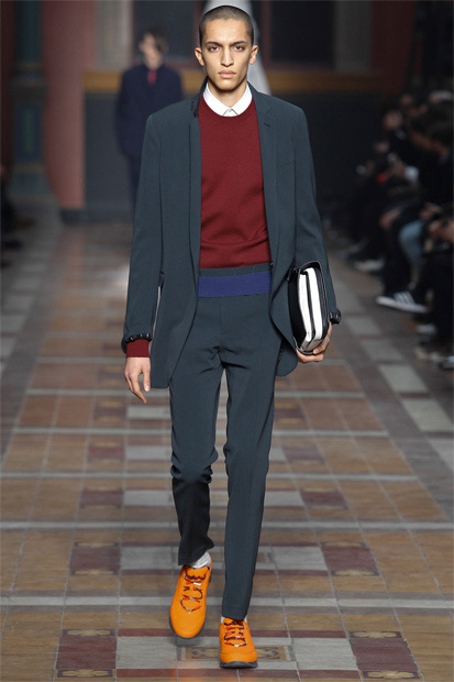 Unveiled at Paris Fashion Week, the new Fall/Winter 2014 collection from Lanvin offers a large variety of loose-fitting tees, jackets, suits and sweaters decorated with vibrant accents such as stripes, leopard print and abstract shapes. More looks below.