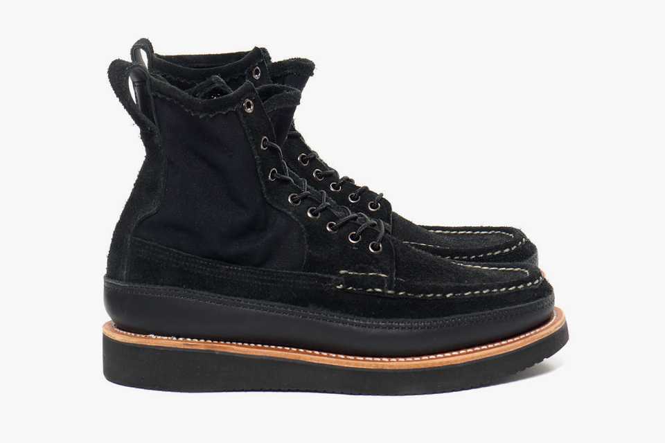HAVEN worked with outdoor boot specialist Russell Moccasin Co. for a custom made Elk Leather PH II boots. Constructed using elk and suede leathers, the hunting boot features true moccasin construction with a multi layered water proof vamp that has been fortified with hand stretched and sewn leather. The boots are now available exclusively at HAVEN for $588 USD.