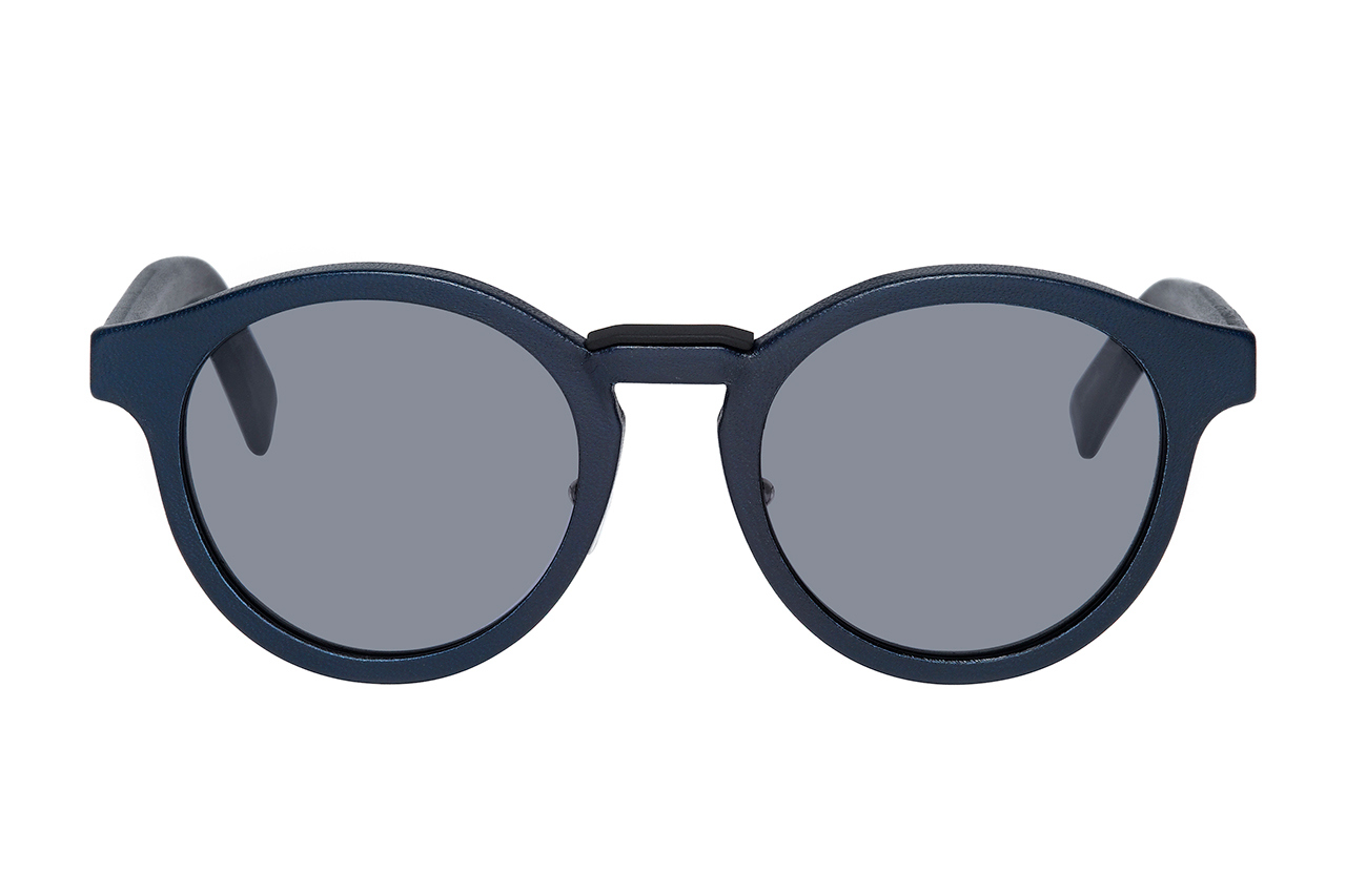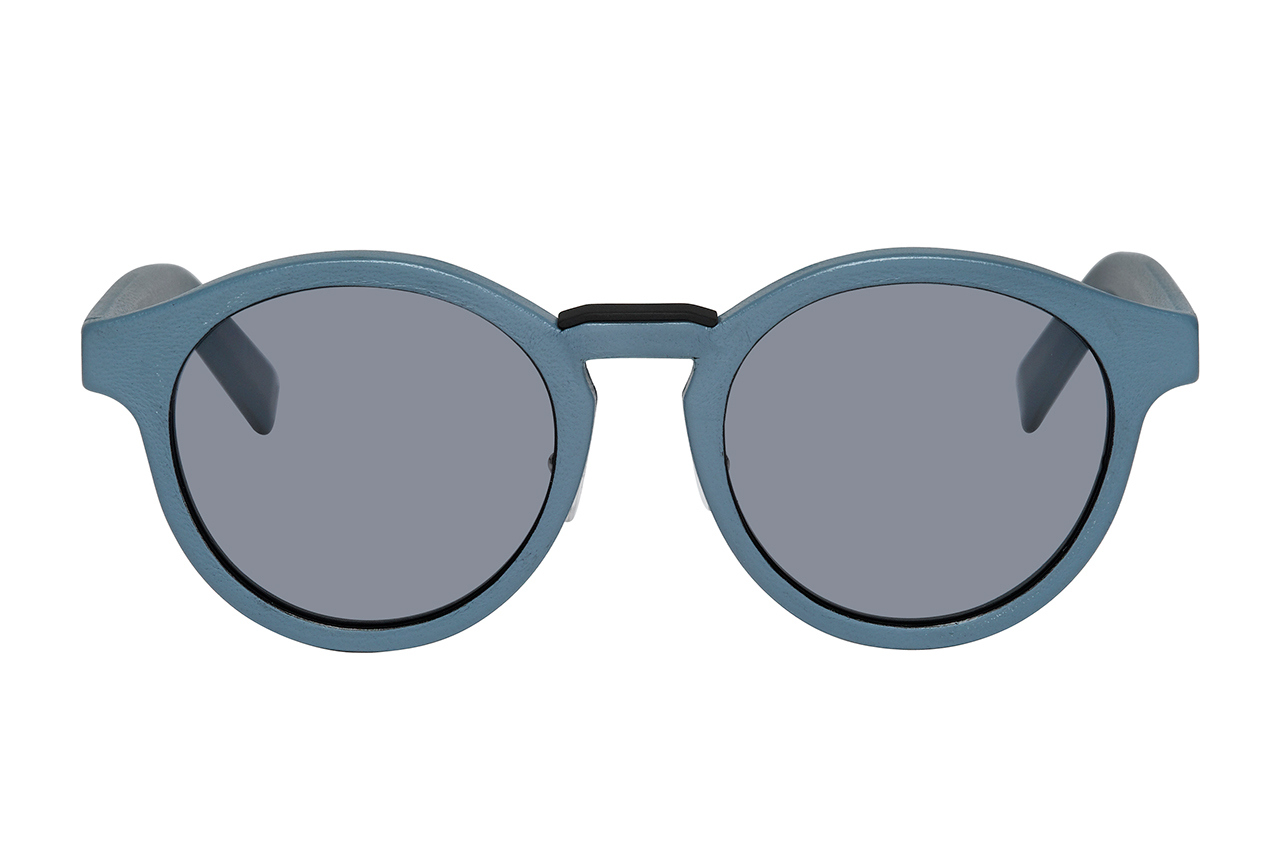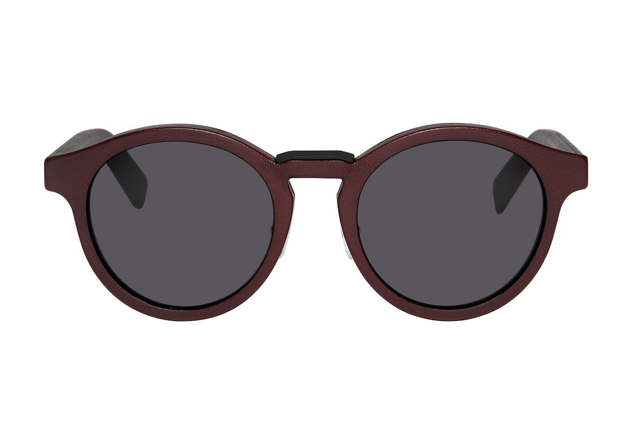 These Black Tie 193S frames from Dior Homme feature textured leather trim around the body of the circular frames. Available in burgundy, black, steel blue, and navy colorways. Expected to show up at Dior Homme boutiques in the coming weeks.