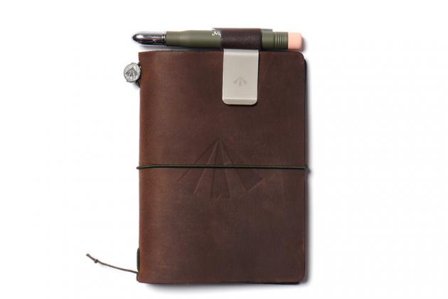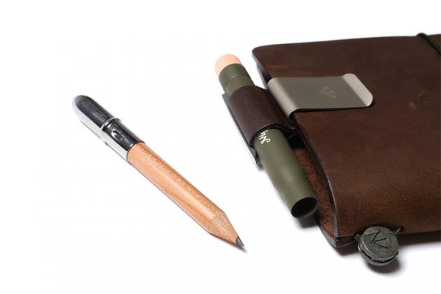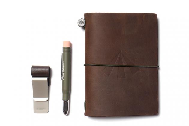 Nigel Cabourn and Japanese stationary brand Midori collaborates on a collection of travelers' notebooks. It adopts a sleek army design and has features that include a removable pen holder, a brass cased pencil with eraser tip and an identification page and refillable paper inserts.