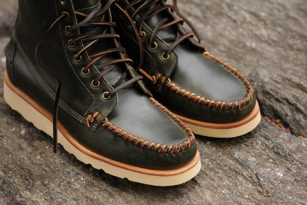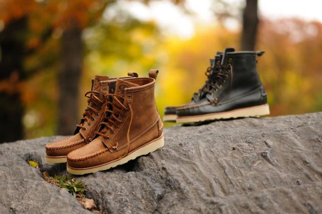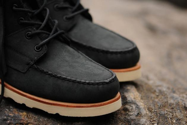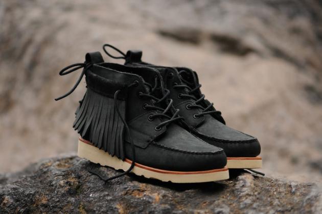 Ronnie Fieg is back with handmade premium leather boots for Fall/Winter 2013 for Sebago. The classic Iroquois Lux headlines the collection with an all-over black-on-black nubuck upper, leather lining and a removable fringe collar. It has a Vibram outsole and leather welt/midsole.