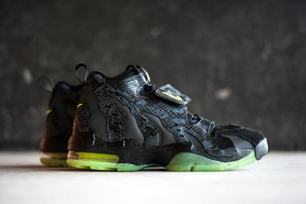 Here's yet another retro release from the likes of Nike's archives. These updated Air Max ’96 features a combination of leather and nubuck with snakeskin print leather overlays on the upper. Neon reen accents and a translucent green outsole add a bit more contrast. The Nike Air Max ’96 DT PRM “Snake Glow” is now available at select stockists, including Sneaker Politics for $145 USD.