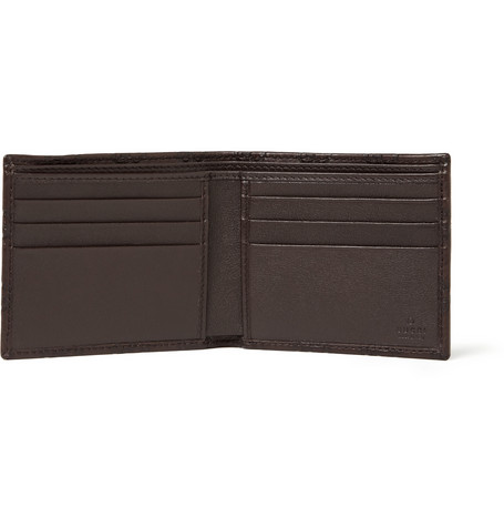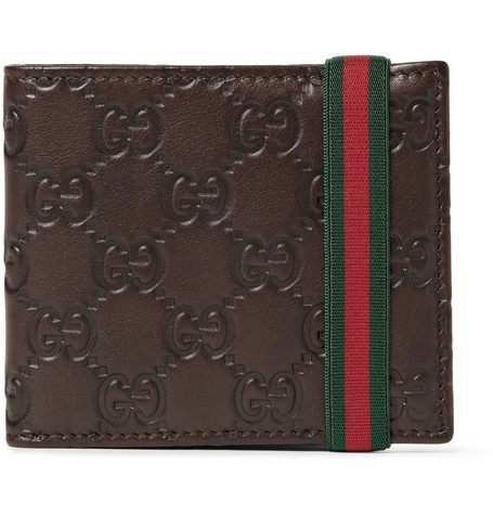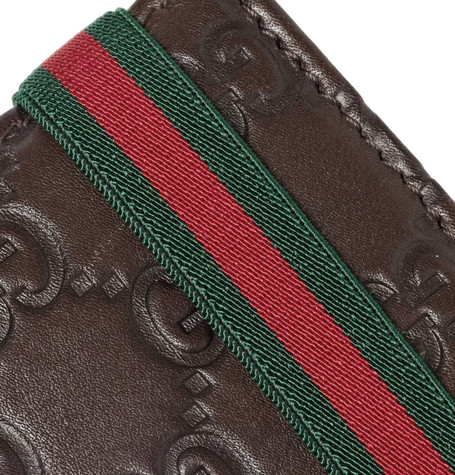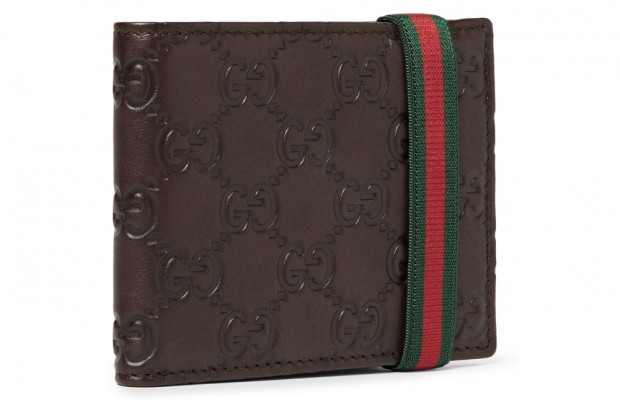 Why do men carry wallets anymore these days? Those things are bulky! Gucci's leather wallet is a testament to heritage and its unyielding tradition. The compact card holder is detailed with a striped strap featuring the signature red and green webbed design. Available at Mr Porter.