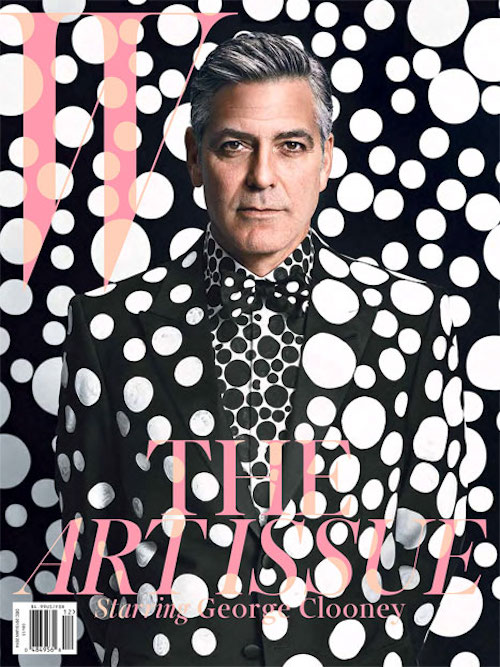 W Magazine has picked George Clooney to grace the cover of its December 2013 Art Issue. Japanese artist Yayoi Kusama was the guy who came up with the idea to make Clooney blend into his spotty background. In the feature, Clooney talks about his upcoming film The Monuments Men and his love life. You can read the full interview here.