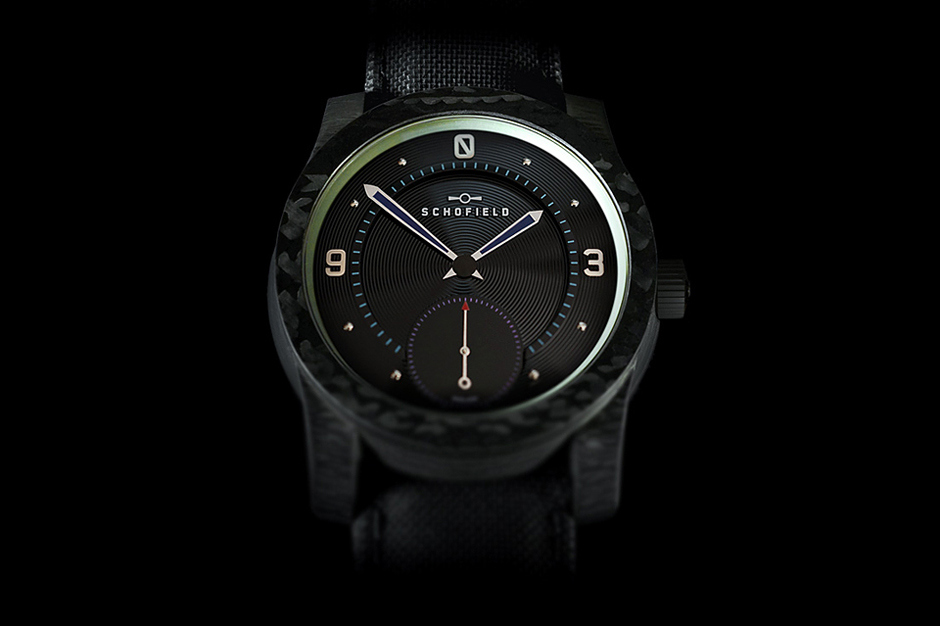 Schofield Watch Company unveiled its limited edition Blacklamp Carbon watch. The watch is produced in a limited run of 101 pieces, and is made from a single billet of a proprietary material called Morta - which is a special carbon fiber matrix that is hand laid and formed into small billets.