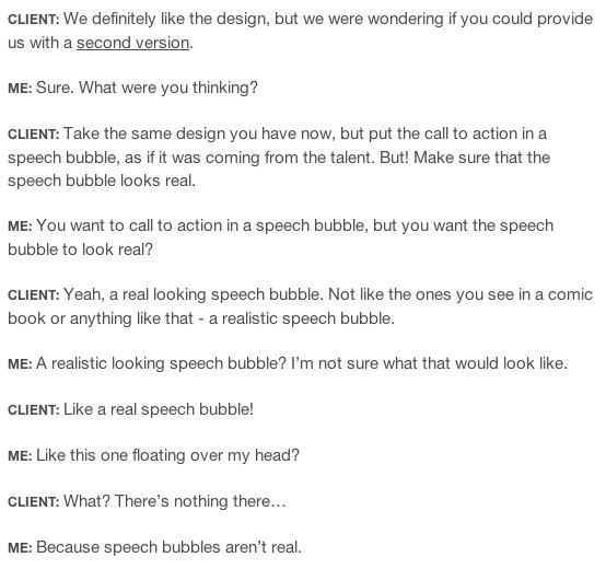 The problem with designing jobs is that most clients don't speak the same language. That's one of the main reasons why jobs get delayed, and briefs get interpreted wrongly. One Imgur user has posted 16 examples of some of the worst people a graphic design could freelance for. You won't believe some of the comments made by these clients.