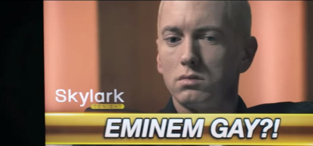 Here's a clip from the almost-never-screened movie 'The Interview.' In an interview segment with its host Dave Skylark, as played by James Franco, Eminem admits he is gay. Watch the hilarious clip below.