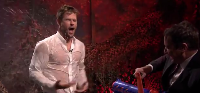 Chris Hemsworth went to water-war with Jimmy Fallon on The Tonight Show and..lost. Or is it win? We can't tell. We're just repeating this video over and over again.