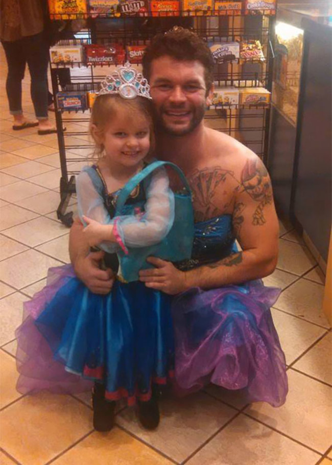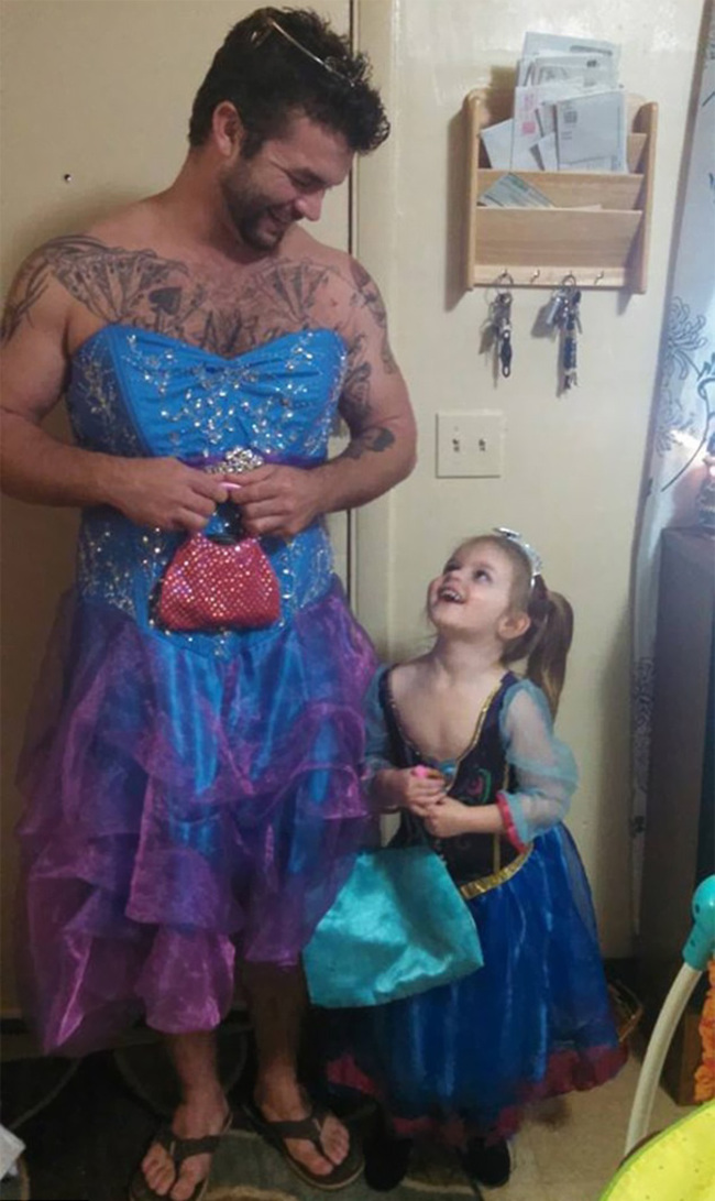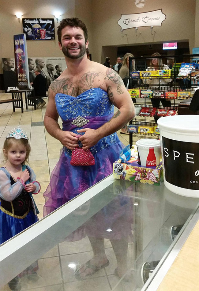 Izzy is four-years-old. She wanted to go see the new Cinderella movie dressed up as a princess but was nervous that she would be the only attendee wearing a princess costume. So her uncle, Jessy Nagy, stepped in to help. He borrowed a prom dress and took his princess niece to the movies.